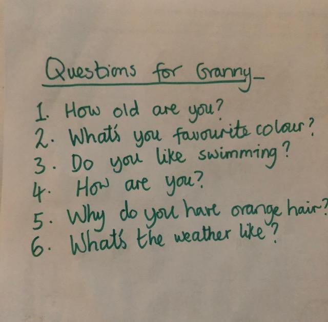 Preschoolers, Reception, Year 1 and Year 2: Talk to your child about questions they might like to ask a particular relative or friend over the phone or video call. Help them to design a few questions to ask – think about different question stems (who, what, where, when, why, how). You might scribe the questions for them or they might have a go themselves. Get them to practise the questions out loud before asking them and then help them to record the answers.